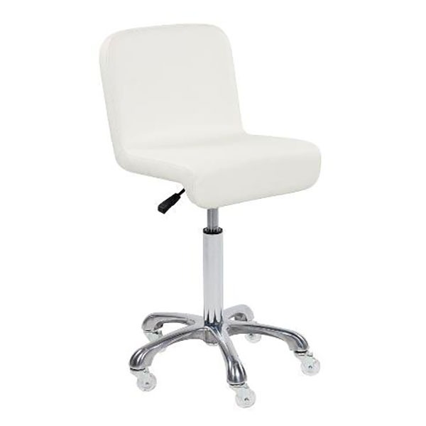 Beauty stool with aluminium connector and base. Transparent wheels.