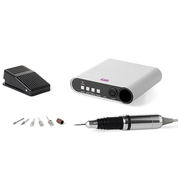 Electric nail fi ling tool set with electronic switches made for professional nail technicians. It comes with a robust and fiable handset that can be switched On/Off by hand or foot pedal. Including set of bits, digital display and maximum rotation speed of 28.000 rpm.