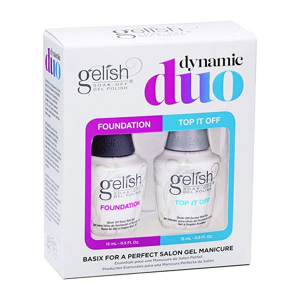Dynamic Duo gel polish essential set includes Gelish Foundation base gel and Top It Off sealer gel.