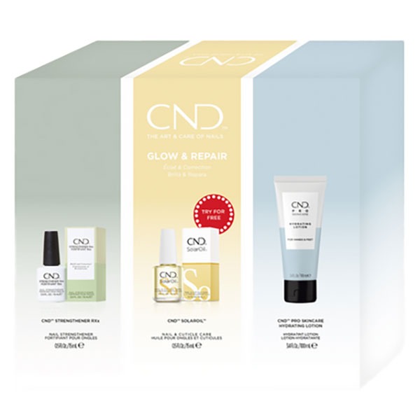 A complete care system designed to repair, strengthen, and hydrate nails and skin. The CND™ Glow & Repair Kit combines three nail care essentials to restore nail health and deliver a radiant, well-groomed finish from fingertips to forearms.