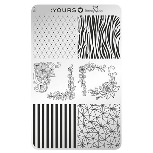 Inspired by Melli Mello, this plate offers a cross-cultural range of prints and patterns which create interesting and fashionable designs. Use the elements individually or dare to layer to create your own Design Medley.